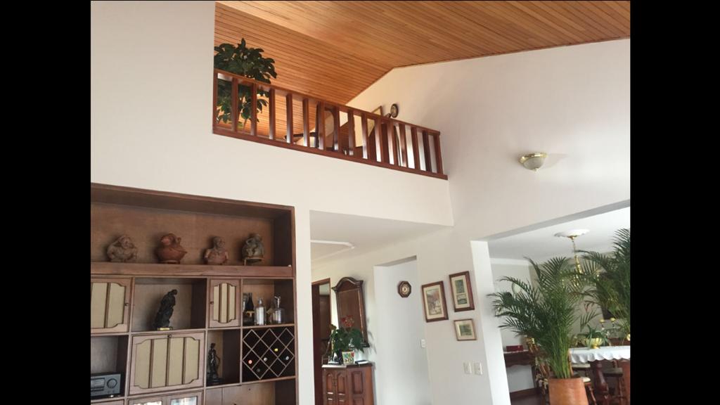 Preciosa casa tipo campestre en lote de 1162 M2, para remodelar al gusto, conjunto cerrado, vigilancia 24 horas, cerca de colegios, vías principales, transporte público, supermercados, centros comerciales, parques y biblioteca Julio Mario Santo Domingo. Acabados en madera, sala con chimenea tradicional, comedor en un solo ambiente con salida a zona BBQ, cocina integral, comedor auxiliar, zona de lavandería y puerta de salida hacía jardín interior, tres habitaciones en el segundo nivel principal con walk in closet, todas con vista exterior y luz natural, altillo que sirve de sala u otra habitación, estudio o biblioteca Cuenta con cinco parqueaderos cubiertos y dos depósitos. Las puertas de ingreso al conjunto son automatizadas.